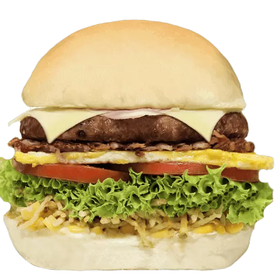 PÃO, CARNE, SALADA, QUEIJO, OVO, BACON, MILHO E BATATA PALHA